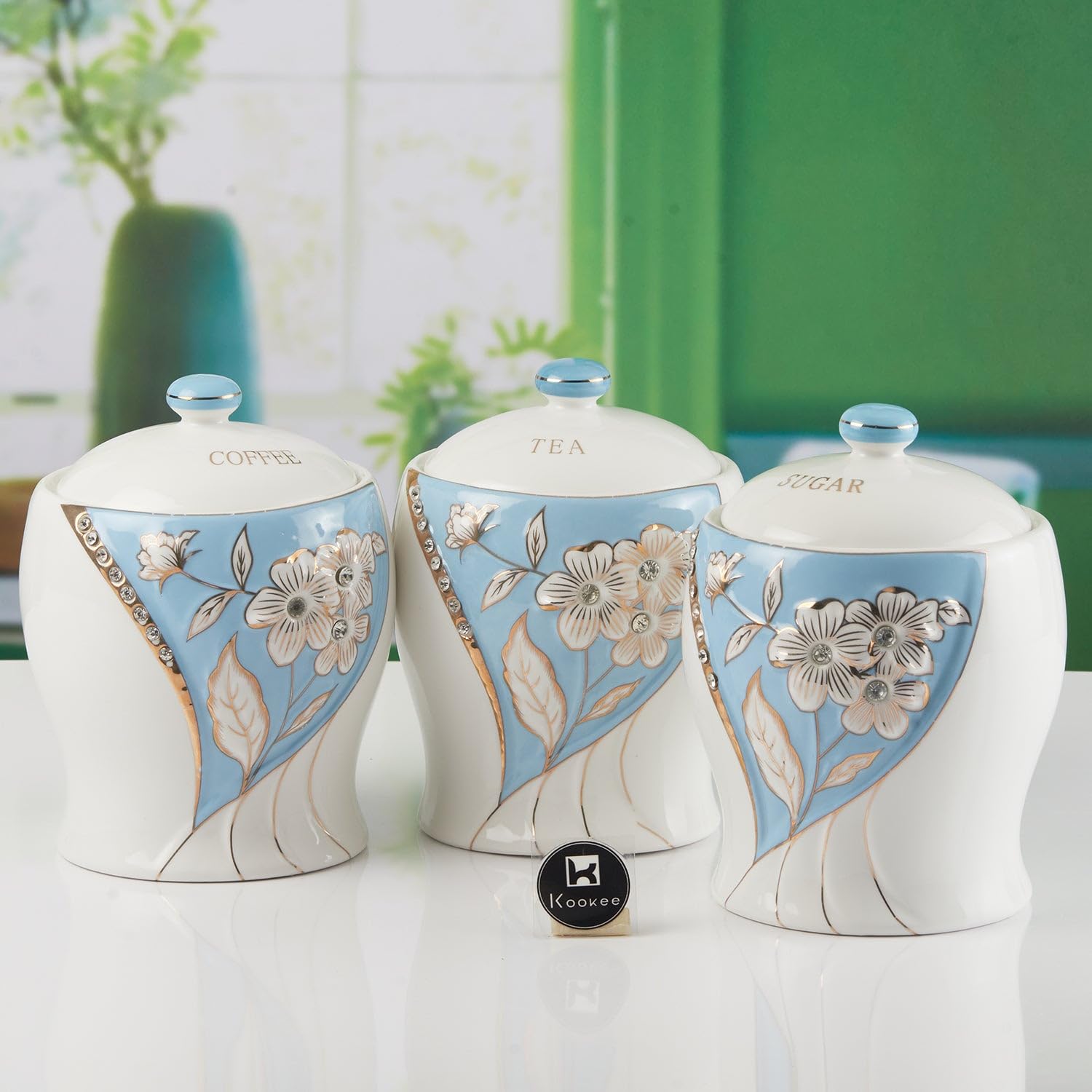 Organize your kitchen countertop with our ceramic tea, coffee, and sugar canister jars. These stylish containers feature airtight lids, preserving freshness and flavor while adding a touch of elegance to your daily routine.